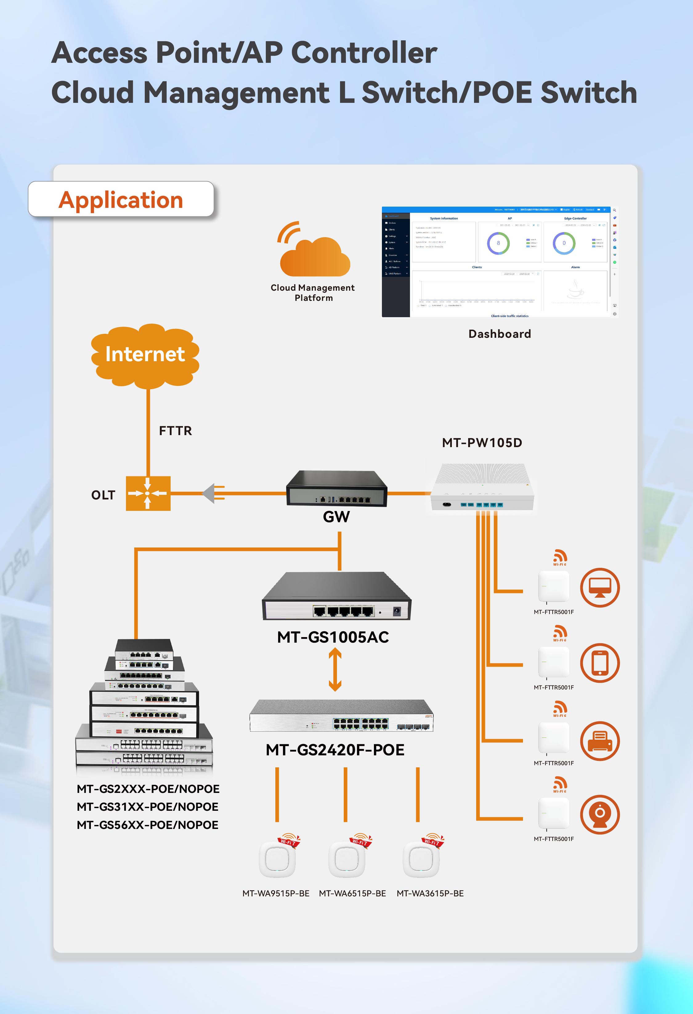 具備高性能的數(shù)據(jù)交換能力,支持多端口連接,能有效提升網(wǎng)絡的傳輸效率和穩(wěn)定性;支持云管理平臺,實現(xiàn)對設備的遠程監(jiān)控、配置管理、故障診斷和軟件升級,大大提高了管理效率。